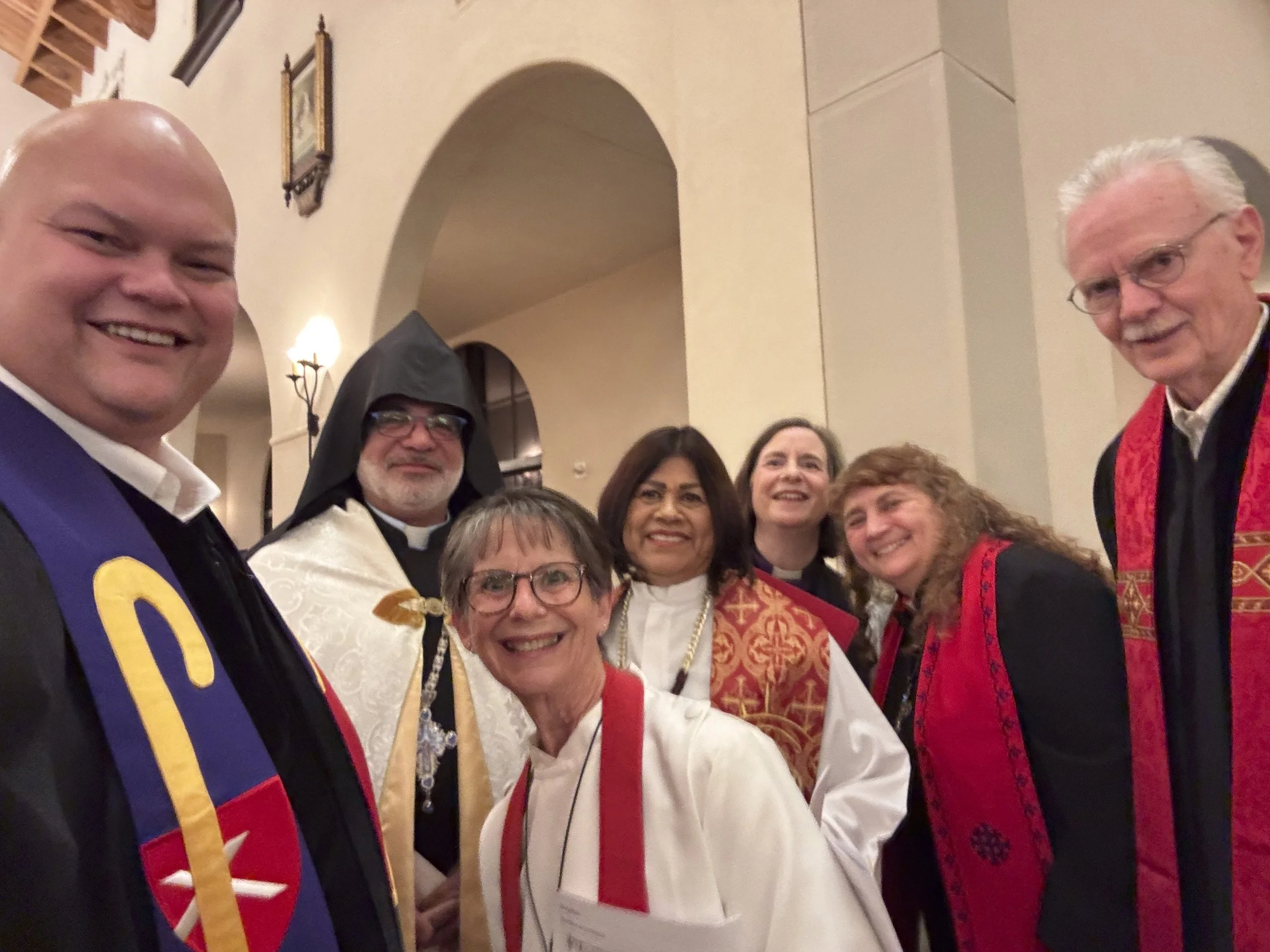 On January 21, 2026, Ecumenical Worship service for the Week of Prayer for Christian Unity, St. Gabriel Catholic Church, Poway, Rev. Cheri Metier, Chairperson, PSWR Ecumenical and Interfaith Relations, organized clergy from throughout the San Diego area for a prayer service celebrating Christian Unity. It was a sacred, unifying, and spirit filled event. Pictured are the Rev. Dr. Michael Kinnamon, Rev. Cheri Metier, and participating clergy.