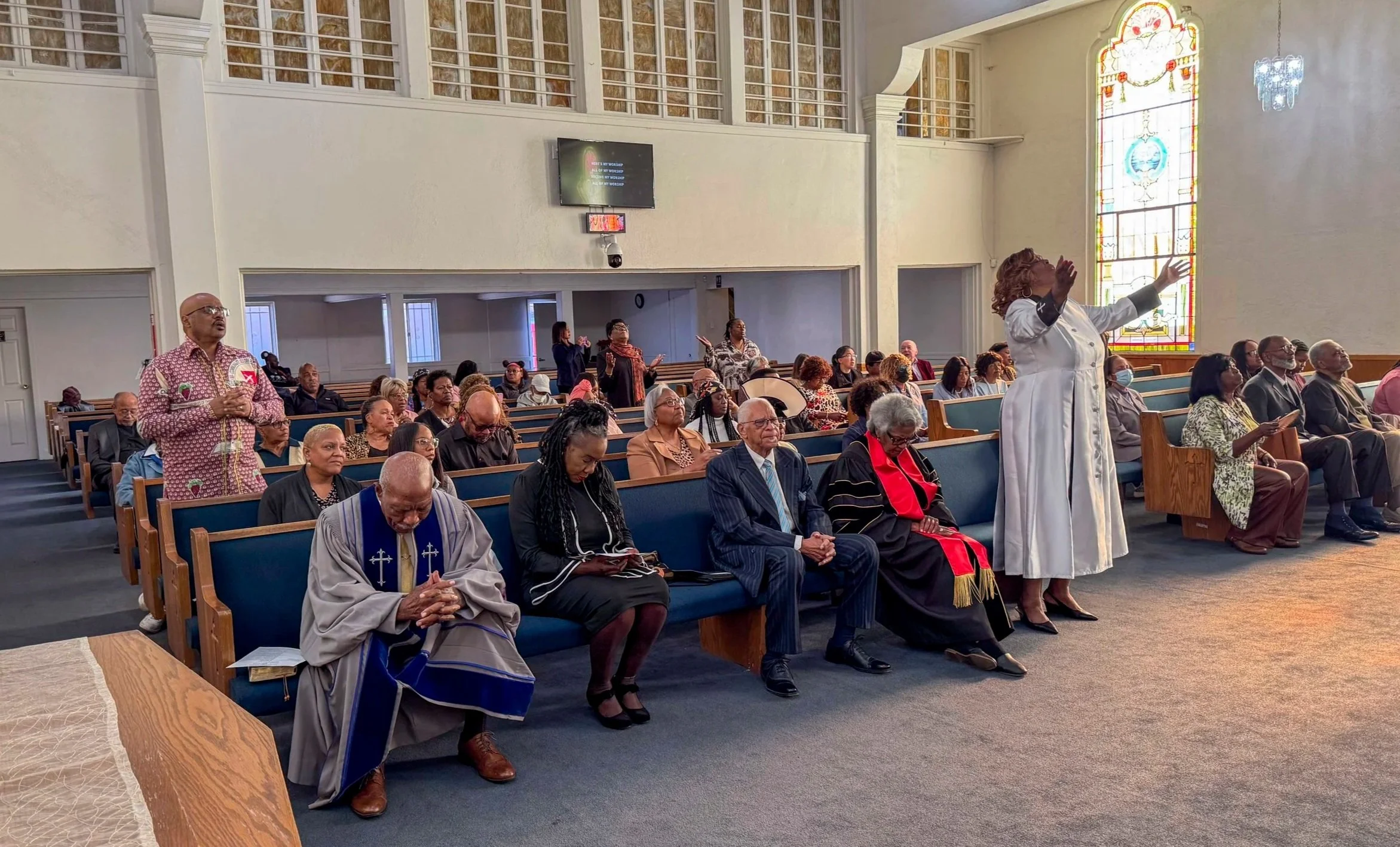 On January 10, 2026, Love and Peace Fellowship Church, called and celebrated the installation of its Pastor Crystal Nix. This spirited filled event was held at her longtime home congregation Abundant Life Christian Church, Los Angeles, CA. Pictured is a worshipful moment of Pastor Crystal Nix and representatives from across the region.