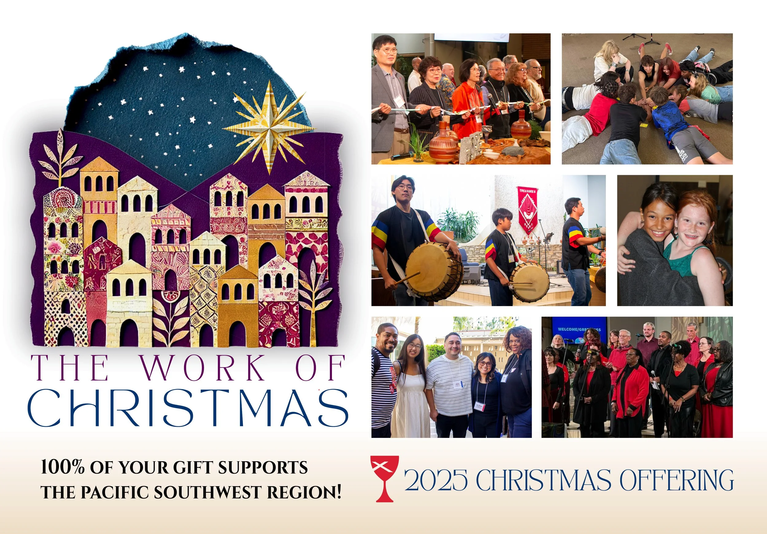 Su Ofrenda de Navidad apoya a nuestros Ministerios Regionales del Suroeste Pacífico, que se dedican a desarrollar líderes, programas y servicios para apoyar a una comunidad regional de fe. Sus regalos generosos apoyan nuevos programas, mejoran las instalaciones y contribuyen a iglesias sanas, vitales y en crecimiento, así como becas y fondos financieros para alentar la diversidad y la integridad.
