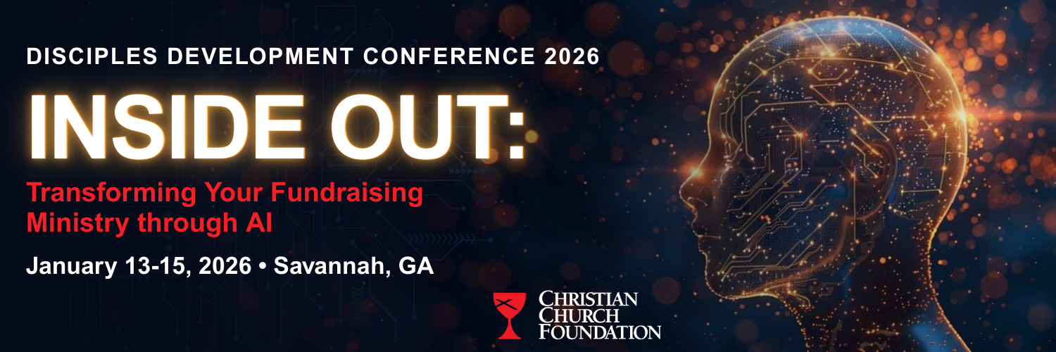 You may be excited by the opportunity to fully embrace AI technology or simply want to better understand how AI might impact your work. The Disciples Development Conference will explore how AI is being used and can be harnessed to transform your fundraising efforts. At the center of our exploration will be the responsible use of AI within the context of our ministries. Click here for registration and event details.