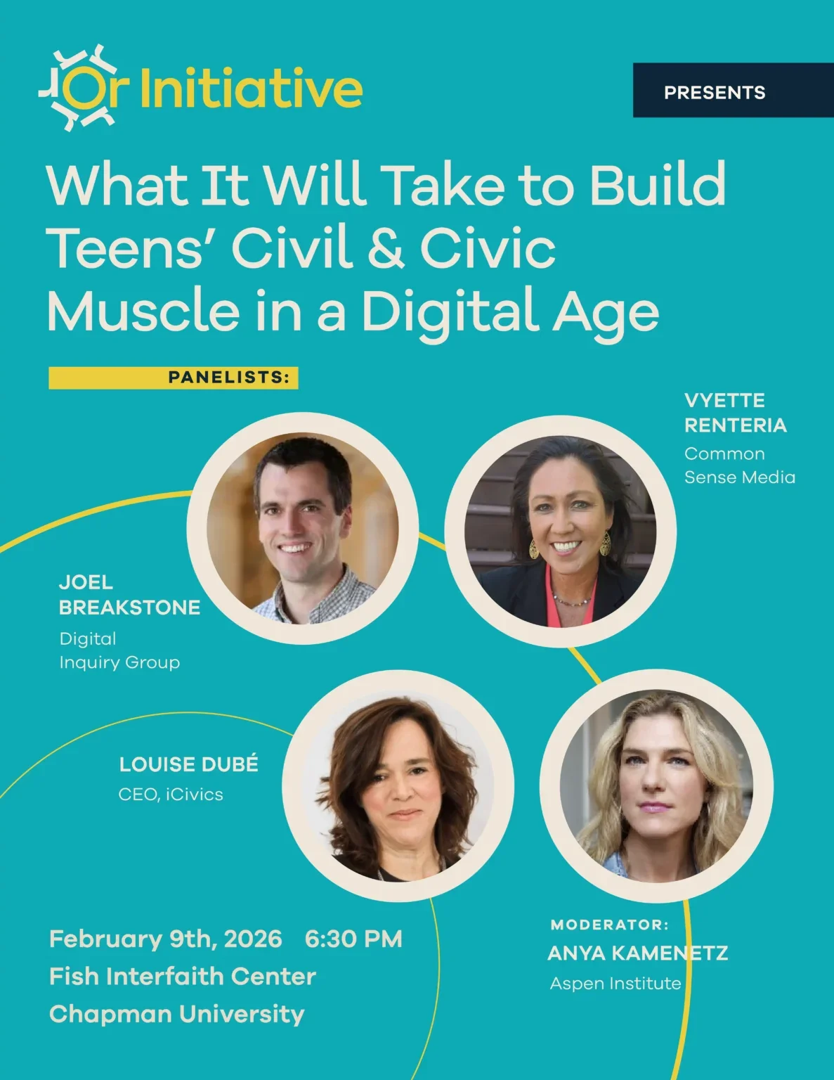 The launch will take place at Chapman University in Orange, CA, February 9 at 6:30 pm and February 10 from 9 am to 1 pm. Here are program details: https://orinitiative.org/events/ The Tuesday event will be of particular interest to educators and people who work with youth.