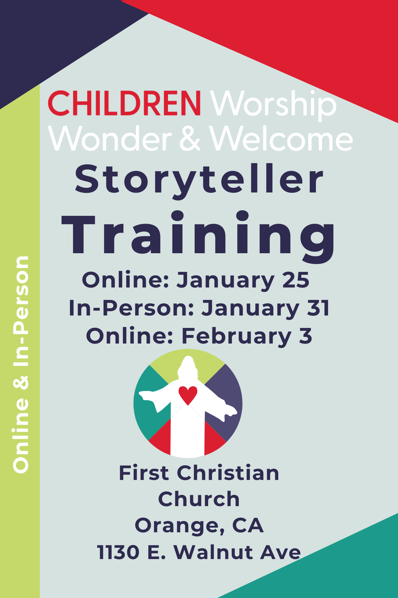 Join us at the end of January for our new, hybrid, Storyteller training, led by Cathy Perring at First Christian Church in Orange, California.